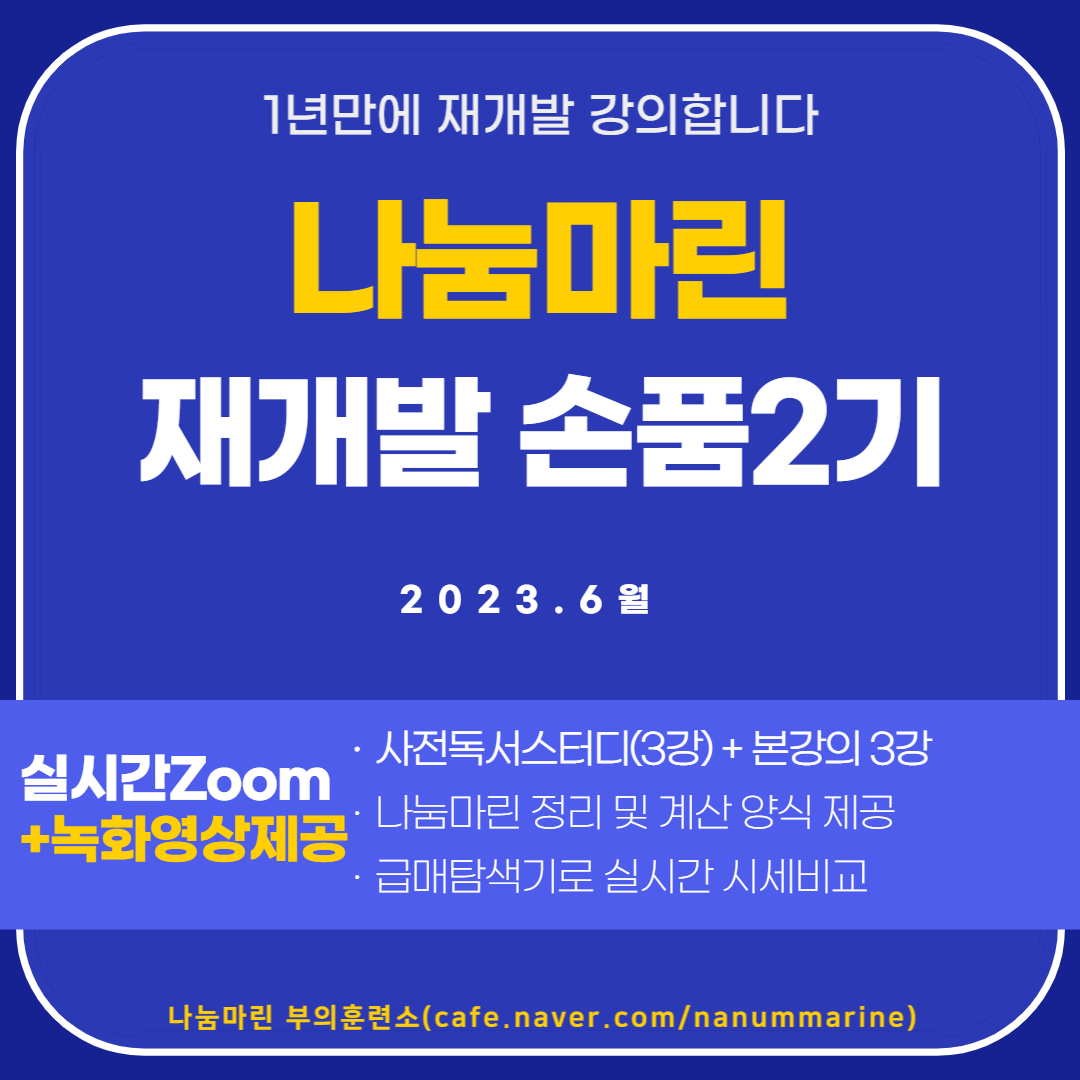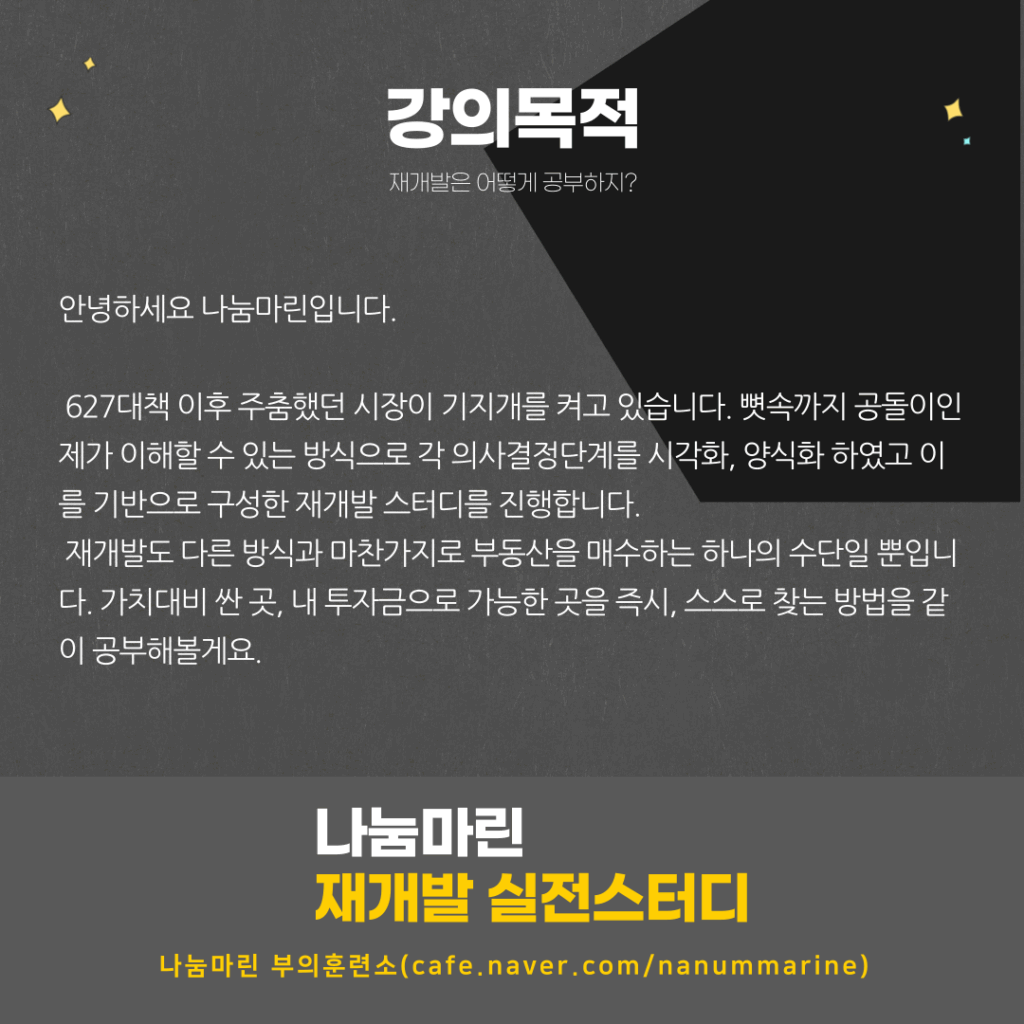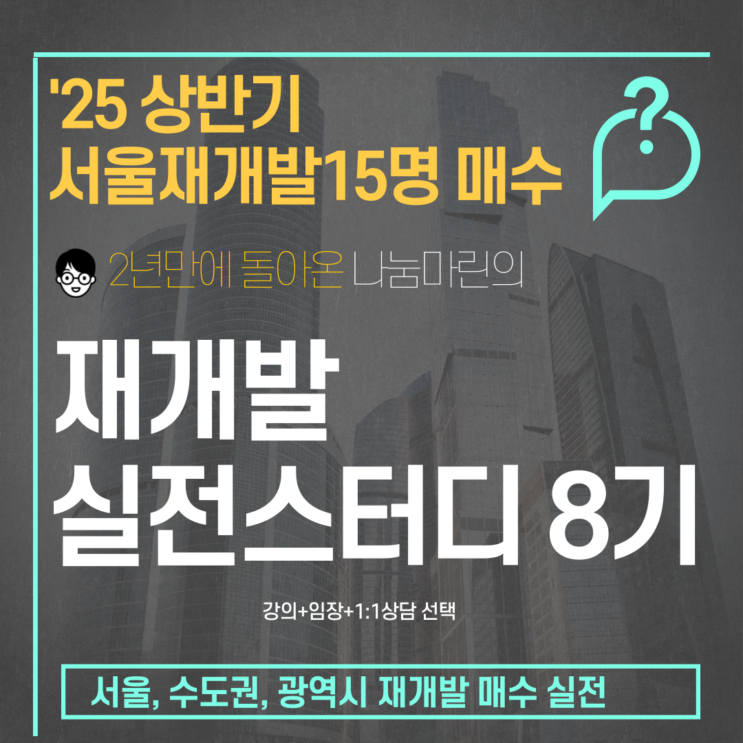 안녕하세요 나눔마린입니다. 재개발 실전스터디 8기를 모집합니다.