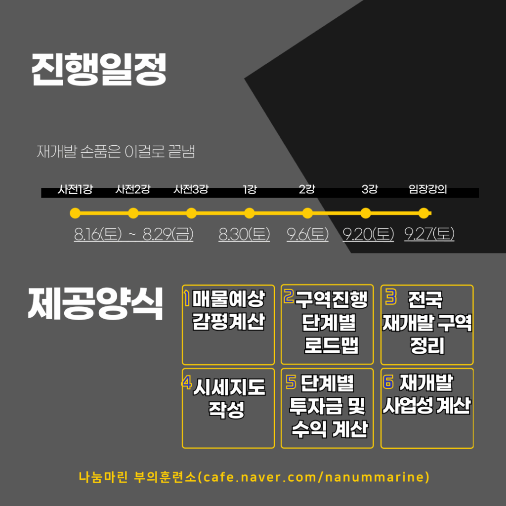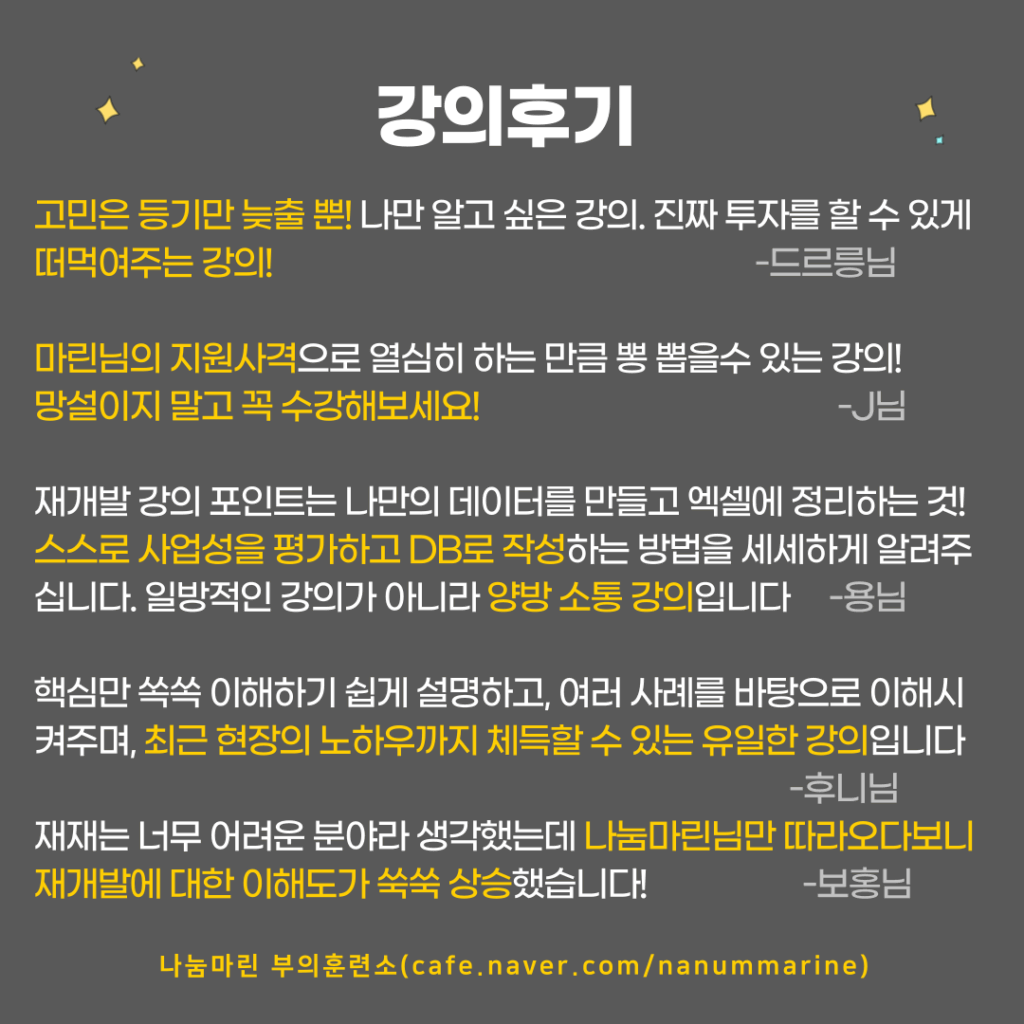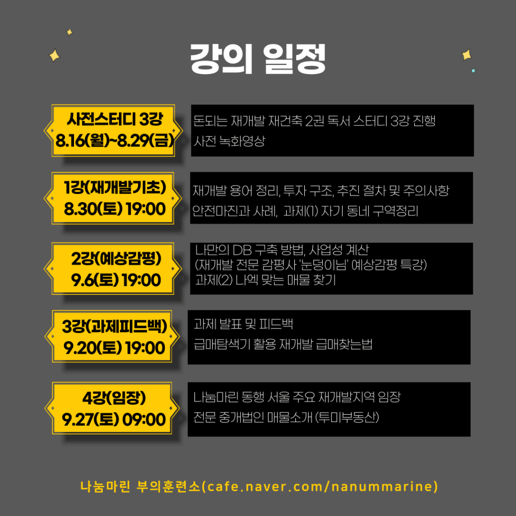 안녕하세요 나눔마린입니다. 재개발 실전스터디 8기를 모집합니다.